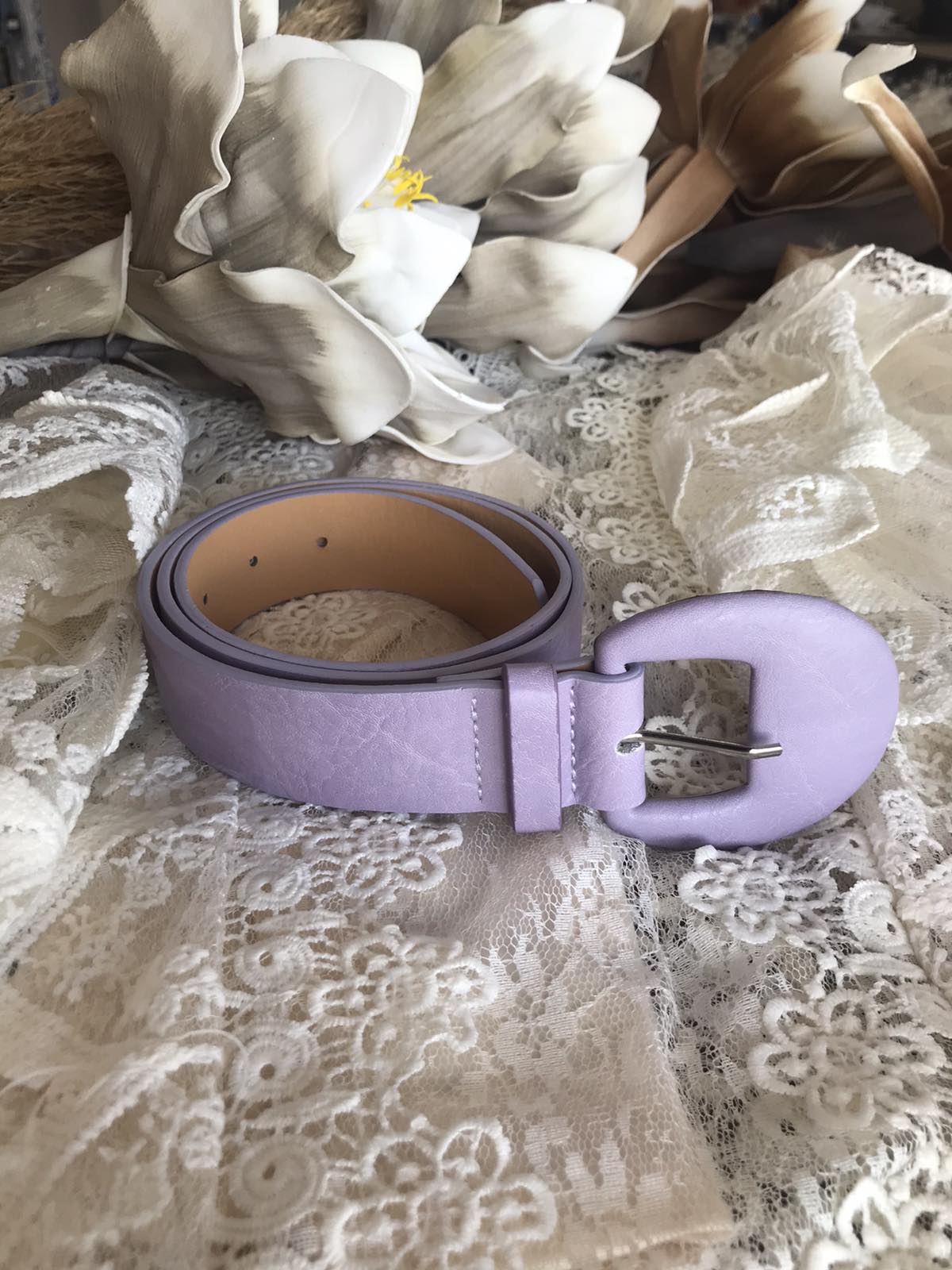 Ζώνη και ντυμένη αγκράφα από δερματίνη σε φωτεινή απόχρωση του μωβ.