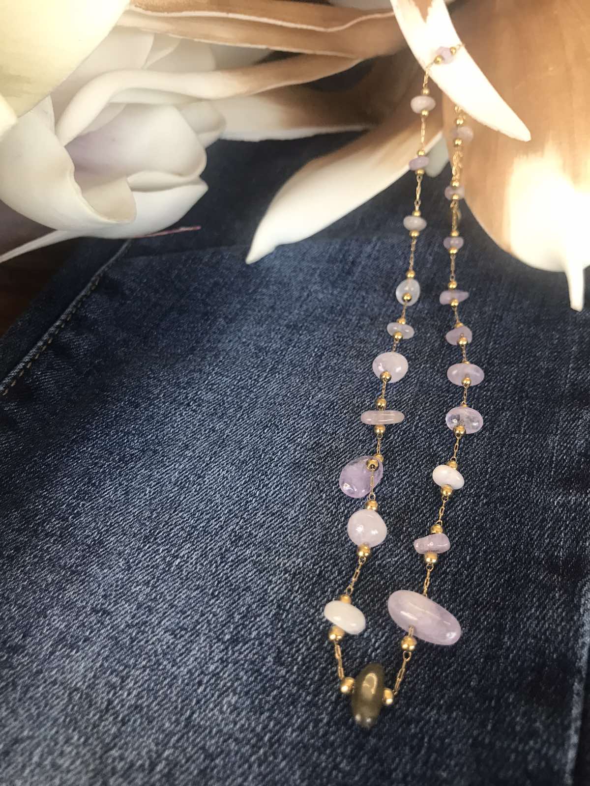 Κολιέ με χρυσή αλυσίδα και τσιπς μωβ χαλαζία.