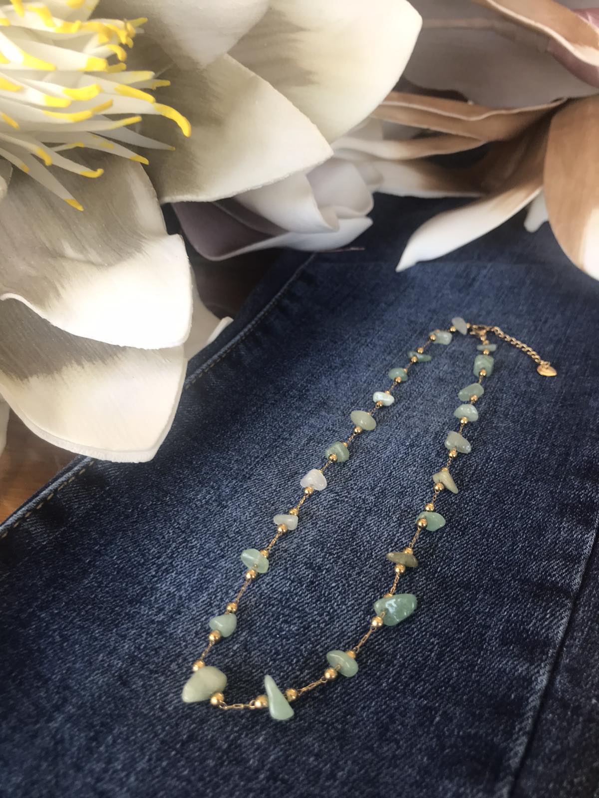 Κολιέ με χρυσή αλυσίδα και τσιπς πράσινου χαλαζία.