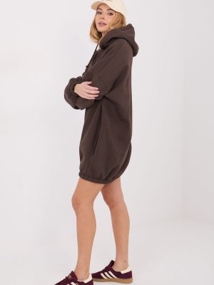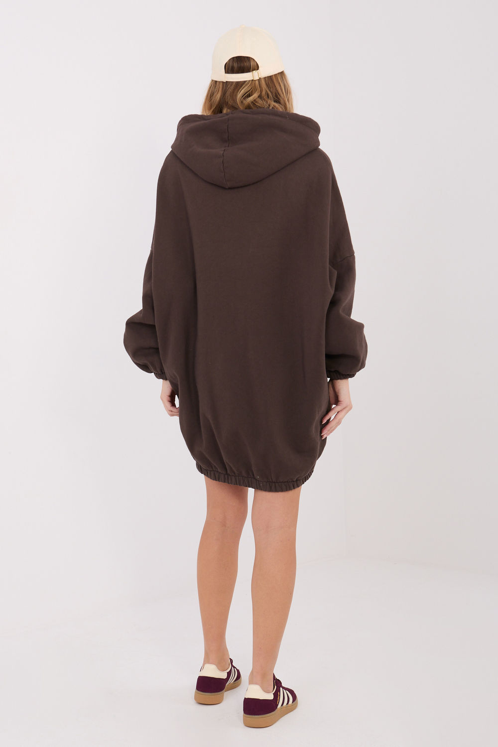 Η φόρεμα φούτερ σε oversized σχέδιο είναι μια άνετη και στυλάτη πρόταση για καθημερινές εικόνες. Κατασκευασμένη από υψηλής ποιότητας βαμβάκι με πρόσθετο ελαστάν, εγγυάται άνεση στη φόρεση, ελαστικότητα και ελευθερία κινήσεων. Το λείο μοτίβο υπογραμμίζει τον καθολικό της χαρακτήρα και διευκολύνει την προσαρμογή της σε διάφορες αξεσουάρ. Το μοντέλο έχει μήκος mini, με μακριά μανίκια και πρακτική κουκούλα, και φοριέται πάνω από το κεφάλι. Η ραμμένη στο κάτω μέρος λάστιχο ελαφρώς συγκεντρώνει το φόρεμα, δίνοντάς του μοντέρνα εμφάνιση και ελαφρώς αθλητικό χαρακτήρα. Η θερμομόνωση προσφέρει ζεστασιά στις ψυχρότερες μέρες, και οι τσέπες που είναι κρυμμένες σε πλάγιες ραφές αυξάνουν τη λειτουργικότητα. Ιδανική πρόταση για καθημερινή χρήση, για να φορεθεί με αθλητικά παπούτσια, sneakers ή μπότες.