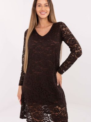 Μια εκλεπτυσμένη φόρεμα μέχρι το γόνατο, κατασκευασμένη από κυρίως μείγμα πολυεστέρα, βισκόζης και ελαστάνης, που προσφέρει άνεση, ελαστικότητα και όμορφη εφαρμογή στη σιλουέτα. Το μοντέλο εντυπωσιάζει με την αέρινη υφή και την υποστηρικτική δαντέλα, δημιουργώντας μια εξαιρετικά θηλυκή, κομψή εμφάνιση. Το φόρεμα διαθέτει επένδυση, χάρη στην οποία παρουσιάζεται κομψά και εξασφαλίζει πλήρη άνεση κατά την διάρκεια της χρήσης, παρά το γεγονός ότι το μακρύ μανίκι παρέμεινε χωρίς επένδυση, διατηρώντας την ελαφρότητα και τη λεπτότητα. Ο λαιμός σε σχήμα V βρίσκεται τόσο μπροστά όσο και πίσω, προσθέτοντας στην εμφάνιση έναν αισθησιακό, αλλά ταυτόχρονα κομψό χαρακτήρα. Το μοντέλο δεν διαθέτει κλείσιμο, γεγονός που διευκολύνει την εφαρμογή του και προσαρμόζεται τέλεια στη σιλουέτα. Είναι η ιδανική πρόταση για επίσημες περιστάσεις, αλλά θα λειτουργήσει επίσης άριστα και για τη δουλειά, αν θέλεις να φαίνεσαι κομψά, θηλυκά και επαγγελματικά ταυτόχρονα.