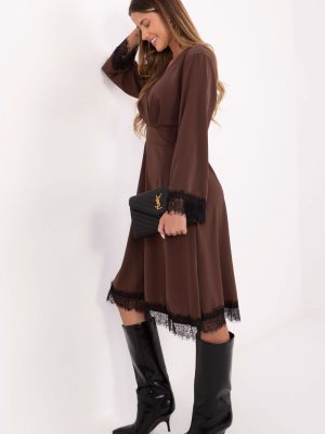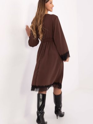 Μια κομψή φούστα που συνδυάζει την κομψότητα με τη διακριτική, γυναικεία χάρη. Κατασκευασμένη από υψηλής ποιότητας μείγμα πολυεστέρα και βισκόζης, είναι ευχάριστη στην αφή, αεροδιαπερατή και εφαρμόζει τέλεια στη σιλουέτα. Το μοντέλο μήκους μίντι με ντεκολτέ τύπου περιτύλιξης αναδεικνύει όμορφα τη σιλουέτα, ενώ η πλατιά του μορφή προσφέρει ελαφρότητα και ελευθερία. Τα μακριά μανίκια και οι δαντελένιες λεπτομέρειες στους καρπούς και στο κάτω μέρος της φούστας προσθέτουν κομψότητα και τρυφερότητα. Οι ραμμένες ελαστικές ταινίες στη μέση στο πίσω μέρος εξασφαλίζουν ιδανική εφαρμογή και άνεση κατά τη διάρκεια της χρήσης, ενώ αναδεικνύουν τη μέση. Η φούστα δεν έχει κούμπωμα, γεγονός που την καθιστά εξαιρετικά βολική στην τοποθέτηση. Είναι η τέλεια επιλογή για καθημερινή χρήση στη δουλειά, καθώς και για πιο επίσημες περιστάσεις, όταν θέλεις να φαίνεσαι κομψή και να αισθάνεσαι άνετα.