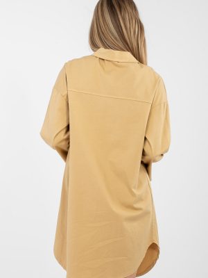 Άνετο πουκάμισο φόρεμα με φαρδιά γραμμή, ιδανικό για καθημερινές εμφανίσεις. Το μοντέλο είναι κουμπωτό, με κλασικό γιακά, που δίνει στην όλη εικόνα διαχρονικό χαρακτήρα. Η ομαλή υφή καθιστά το φόρεμα εξαιρετικά ευέλικτο και εύκολο στον συνδυασμό. Κατασκευασμένο από ευχάριστο βαμβάκι με πρόσθετο ελαστάν, προσφέρει άνεση και ελευθερία κινήσεων. Το μακρύ μανίκι με δυνατότητα αναδίπλωσης επιτρέπει την προσαρμογή του φορέματος ανάλογα με την εποχή και τις ατομικές προτιμήσεις. Το μήκος του είναι πάνω από το γόνατο και το κάτω μέρος φινιρίσκεται με ημικυκλικό τρόπο, υπογραμμίζοντας διακριτικά την σιλουέτα και προσθέτοντας ελαφρότητα. Στο μπροστινό μέρος υπάρχουν πρακτικές τσέπες με καπάκι, οι οποίες ενισχύουν το casual στυλ του φορέματος. Μια εξαιρετική πρόταση για καθημερινές εμφανίσεις, για εργασία, περίπατο ή συναντήσεις σε χαλαρή ατμόσφαιρα.