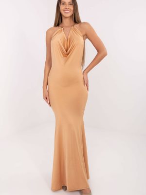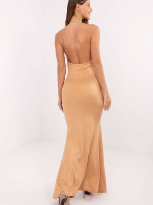 Ελκυστικό maxi φόρεμα με σαγηνευτική γραμμή γοργόνας, ιδανικό για επισκέψεις και εκδηλώσεις όπου η κομψότητα και η εντυπωσιακή εμφάνιση είναι ζωτικής σημασίας. Κατασκευασμένο από κυρίως μείγμα πολυεστέρα και βισκόζης, αγκαλιάζει απαλά τη σιλουέτα, τονίζοντας τις καμπύλες της και παρέχοντας ταυτόχρονα άνεση στη χρήση. Το μοντέλο εντυπωσιάζει με την ομαλή, μινιμαλιστική σχεδίαση, η οποία προσδίδει στυλ και διαχρονικό χαρακτήρα στην δημιουργία. Το φόρεμα είναι χωρίς μανίκια, ενώ προσελκύει την προσοχή με το βαθύ, ρέον ντεκολτέ, που δημιουργεί μια κομψή γραμμή και εκθέτει απαλά τους ώμους. Ένα μοναδικό στοιχείο είναι το κράτημα του φορέματος στον λαιμό με μεταλλικό κρίκο, που έχει τόσο διακοσμητική όσο και πρακτική λειτουργία. Η απουσία παραδοσιακού κλεισίματος καθιστά το φόρεμα να φαίνεται εξαιρετικά ομαλό και σύγχρονο, ενώ η μορφή του παραμένει αδιατάρακτη από επιπρόσθετα στοιχεία. Είναι η ιδανική επιλογή για γυναίκες που επιθυμούν να ξεχωρίσουν με κομψότητα που συνδυάζεται με σύγχρονη και τολμηρή γραμμή.
