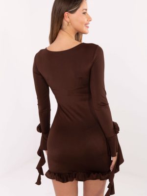Μια κομψή μίνι φορεσιά cocktail σε γραμμή pencil, ιδανική για επισκέψεις και εκδηλώσεις. Κατασκευασμένη από κυρίως μείγμα πολυεστέρα, βισκόζης και ελαστάνης, προσαρμόζεται τέλεια στη σιλουέτα, αναδεικνύει τις καμπύλες της ενώ παράλληλα προσφέρει άνεση στη χρήση. Το μοντέλο διατηρείται σε λεία υφή, προσδίδοντας του κομψότητα και σύγχρονη απλότητα. Η φορεσιά διαθέτει στρογγυλή λαιμόκοψη και μακριά μανίκια, τα οποία είναι τελειωμένα με εντυπωσιακές δαντέλες και διακοσμητική ροζά που είναι κατασκευασμένη από το ίδιο υλικό, ένα λεπτομέρεια που προσθέτει σε όλο αυτόν τον ιδιαίτερο, γυναικείο χαρακτήρα. Στο μπροστινό μέρος, από τη μέση και κάτω, υπάρχουν απαλά πτυχώσεις που διαμορφώνουν διακριτικά τη σιλουέτα και δημιουργούν μία κομψή επίδραση. Το κάτω μέρος της φορεσιάς έχει διακοσμηθεί με δαντέλα, προσδίδοντας στην δημιουργία ελαφρότητα και cocktail γοητεία. Το μοντέλο δεν διαθέτει κούμπωμα, γεγονός που το καθιστά να προσαρμόζεται φυσικά και διευκολύνει την εφαρμογή. Είναι μια ιδανική πρόταση για γυναίκες που αναζητούν μία σικ, γυναικεία και εντυπωσιακή φορεσιά για ειδικές περιστάσεις.