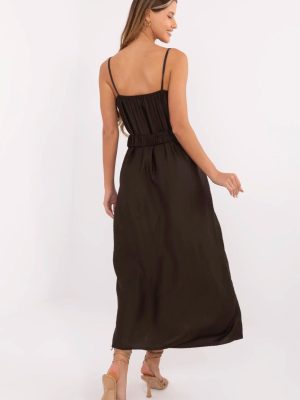 Αυτή η στυλάτη maxi φόρεμα είναι η ιδανική πρόταση για ζεστές, καλοκαιρινές μέρες. Κατασκευασμένο από αεράτο βισκόζη, προσφέρει άνεση κατά την φόρεση και είναι ιδανικό για καθημερινές στυλιστικές επιλογές. Η απλή γραμμή σε συνδυασμό με το λείο, ομοιόμορφο υλικό της προσδίδει μια κομψή απλότητα, που ταιριάζει τόσο για περπάτημα όσο και για συναντήσεις με φίλους. Το φόρεμα διαθέτει λαιμόκοψη σε σχήμα V, που αναδεικνύεται διακριτικά από μια διακοσμητική δαντέλα, προσθέτοντας της γυναικεία γοητεία. Έχει τιράντες, χωρίς κούμπωμα, είναι εύκολη στην τοποθέτηση και εξαιρετικά άνετη. Η προσαρμόσιμη ζώνη με αγκράφα επιτρέπει την ενίσχυση της μέσης και την υπογράμμιση της επιθυμητής σιλουέτας. Είναι το ιδανικό φόρεμα για το καλοκαίρι, ελαφρύ, στυλάτο και ευέλικτο, με λεπτές λεπτομέρειες που τραβούν την προσοχή χωρίς να κυριαρχούν συνολικά.