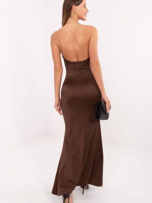Μια κομψή maxi φόρεμα με αίσθηση σε σχέδιο γοργόνας, ιδανικό για επίσημες περιστάσεις και εκδηλώσεις όπου η κομψότητα και η εντυπωσιακή εμφάνιση είναι σημαντικές. Κατασκευασμένο από κυρίαρχο μείγμα πολυεστέρα και βισκόζης, αγκαλιάζει απαλά τη σιλουέτα, υπογραμμίζοντας τις καμπύλες της και παρέχοντας ταυτόχρονα άνεση κατά τη διάρκεια της χρήσης. Το μοντέλο θαυμάζει με το λείο, μινιμαλιστικό σχέδιο, το οποίο προσδίδει στην δημιουργία γραμμή και διαχρονικό χαρακτήρα. Το φόρεμα είναι χωρίς μανίκια και προσελκύει την προσοχή με την βαθιά, ρέουσα λαιμόκοψη, δημιουργώντας μια κομψή γραμμή και αναδεικνύοντας απαλά τους ώμους. Ένα ιδιαίτερο στοιχείο είναι η προσαρμογή του φορέματος στο λαιμό μέσω μεταλλικής βάσης, που λειτουργεί τόσο διακοσμητικά όσο και πρακτικά. Η έλλειψη παραδοσιακού κλεισίματος καθιστά το φόρεμα να φαίνεται εξαιρετικά ρευστό και μοντέρνο, με τη μορφή του να παραμένει αδιάκοπη από επιπλέον στοιχεία. Είναι η ιδανική επιλογή για γυναίκες που επιθυμούν να ξεχωρίσουν με κομψότητα συνδυασμένη με μοντέρνα, τολμηρή γραμμή.