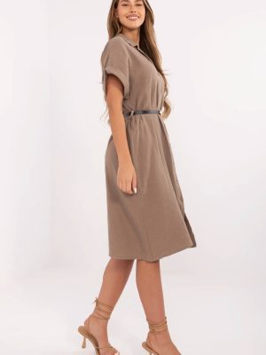 Η κλασική μουσελίνα φόρεμα με απλή γραμμή είναι η ιδανική επιλογή για καθημερινές περιστάσεις και εργασία. Κατασκευασμένο από αεριζόμενο 100% βαμβάκι, εξασφαλίζει άνεση κατά τη διάρκεια της ημέρας, ακόμη και τις θερμότερες ημέρες. Ο λείος ύφασμα και ο διακριτικός σχεδιασμός το καθιστούν ιδανικό για έναν μινιμαλιστικό αλλά ταυτόχρονα κομψό στυλ. Το μοντέλο διαθέτει κοντό μανίκι, κλασικό γιακά και κουμπιά σε όλο το μήκος. Στη μέση υπάρχει μια ρυθμιζόμενη ζώνη που τονίζει τη σιλουέτα και επιτρέπει να ρυθμίσετε το στυλ σύμφωνα με τις προτιμήσεις σας. Το μήκος κάτω από το γόνατο το καθιστά μια καθολική επιλογή για το γραφείο, συναντήσεις ή καθημερινές εξόδους. Είναι μια διαχρονική πρόταση για γυναίκες που εκτιμούν την απλότητα, την άνεση και τα φυσικά υλικά σε κομψή έκδοση.