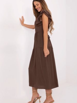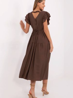 Μια κομψή και θηλυκή καλοκαιρινή φόρμα με φαρδύ σχεδιασμό είναι η ιδανική επιλογή για καθημερινή χρήση και για την εργασία. Κατασκευασμένη από ελαφρύ και αεράτο μείγμα βισκόζης και ναυλόν, παρέχει άνεση ακόμη και τις πιο ζεστές μέρες. Το μοντέλο μήκους μίντι τοποθετείται όμορφα στη σιλουέτα, ενώ η ζώνη στη μέση επιτρέπει να τονιστεί διακριτικά η μέση. Το απλό ύφασμα προσδίδει στην φόρμα έναν μοναδικό, κομψό χαρακτήρα, διευκολύνοντας την προσαρμογή σε διάφορες στυλιστικές προτάσεις. Το κοντό μανίκι με φούσκες προσθέτει ελαφρότητα και ρομαντική γοητεία, ενώ η χαμηλή λαιμόκοψη απλώνοντας οπτικά το λαιμό προσθέτει θηλυκότητα. Η φόρμα κλείνει με κουμπιά στο πίσω μέρος, που αποτελεί μια στιλάτη λεπτομέρεια και διευκολύνει την εφαρμογή. Αυτή είναι η ιδανική πρόταση για γυναίκες που εκτιμούν την άνεση, την κομψότητα και τη λειτουργικότητα, τόσο στην καθημερινή τους ζωή όσο και τις πιο ήρεμες καλοκαιρινές ημέρες.