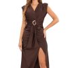 Στυλάτο, γυναικείο pencil φόρεμα midi, φτιαγμένο για ξεχωριστές περιστάσεις. Κατασκευασμένο από υψηλής ποιότητας μείγμα βισκόζης και πολυεστέρα, προσφέρει τέλεια εφαρμογή και άνεση κατά τη διάρκεια της χρήσης. Το μοντέλο ξεχωρίζει για τα ραμμένα μαξιλάρια στους ώμους, που δίνουν στην σιλουέτα μια κομψή, εκφραστική μορφή. Ο φάκελος λαιμόκοψη αναδεικνύει όμορφα τη γραμμή του στήθους, ενώ η σχισμή μπροστά εκθέτει διακριτικά το πόδι, προσθέτοντας μια αισθησιακή διάσταση στο σύνολο. Στο μπροστινό μέρος υπάρχουν πτυχώσεις με μεταλλική διακόσμηση που οπτικά αδυνατίζουν την μέση και αποτελούν ένα εντυπωσιακό στοιχείο. Φόρεμα χωρίς μανίκια, χωρίς κλείσιμο, λείο και διαχρονικό, ιδανικό για επίσημες εξόδους, εκδηλώσεις και κομψές υποδοχές.