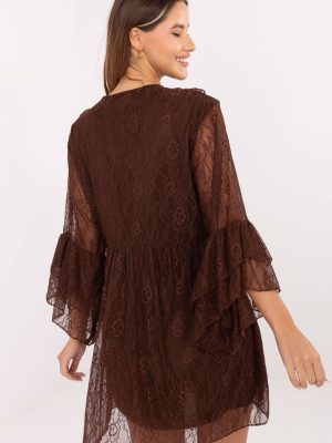 Μια εντυπωσιακή δαντελένια φόρεμα με φουσκωτό σχέδιο είναι μια πρόταση που θα αναδείξει τη θηλυκότητα και θα προσθέσει γοητεία σε κάθε στυλ. Κατασκευασμένο από λεπτή δαντέλα με διάτρητο σχέδιο και επιπλέον νάιλον και ελαστάνη, ταιριάζει όμορφα στη σιλουέτα και εξασφαλίζει άνεση κατά τη διάρκεια της χρήσης. Το μοντέλο διαθέτει φόδρα που προσφέρει άνεση και κομψό φινίρισμα. Ο λαιμός σε σχήμα V με δέσιμο αναδεικνύει διακριτικά το λαιμό, ενώ το φρου φρου μπροστά και τα μανίκια 3/4 που τελειώνουν με φράμπες προσθέτουν ρομαντικό και στυλάτο χαρακτήρα. Το φόρεμα μήκους μίνι είναι ιδανικό για πάρτι, δεξιώσεις, Πρωτοχρονιά ή άλλες επίσημες περιστάσεις, δημιουργώντας μια εκθαμβωτική, γεμάτη χάρη στυλιστική εμφάνιση.