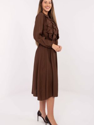 Κομψό φούστα κομμάτι με φούστα τύπου πουκαμίσου, ιδανικό για καθημερινή χρήση, για εργασία και για επισκέψεις. Κατασκευασμένο από βισκόζη, προσφέρει άνεση, ελαφρότητα και φυσική τοποθέτηση του υφάσματος στο σώμα. Το μοντέλο σε μήκος μίντι ξεχωρίζει για το ομαλό σχέδιο του, το οποίο της προσθέτει κομψότητα και καθολικό χαρακτήρα. Το φόρεμα διαθέτει μακρύ, φουσκωτό μανίκι, με μανσέτα, που προσδίδει μια λεπτή κομψότητα. Το πάνω μέρος έχει τελειώσει με κολάρο και κλείνει με κουμπιά μέχρι τη μέση, επιτρέποντας στην δημιουργία να συνδυάζει την κομψότητα της πουκαμίσας με τη γυναικεία ελαφρότητα. Από τις δύο πλευρές της λίστας κουμπιών υπάρχουν λεπτές φούσκες που προσθέτουν στο φόρεμα μια μοναδική γοητεία. Στη μέση έχει ραμμένη ελαστικότητα, εξασφαλίζοντας ιδανική εφαρμογή και άνεση κατά τη χρήση, ενώ η επιπλέον ζώνη που δένει τονίζει τη μέση και επιτρέπει τη ρύθμιση του επιπέδου προσαρμογής. Αυτή είναι μια στυλάτη και πρακτική πρόταση για γυναίκες που εκτιμούν την κομψότητα και την άνεση στην καθημερινή της εμφάνιση.