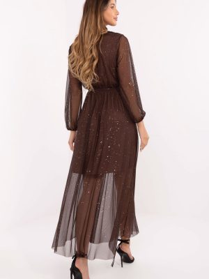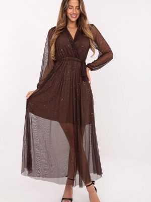 Μια εκπληκτική κομψή φόρεμα με κλος σιλουέτα, ιδανικό για ειδικές περιστάσεις, γιορτές ή βραδινές εξόδους. Κατασκευασμένο από υψηλής ποιότητας πολυέστερ με προσθήκη ελαστάνης, το φόρεμα εφαρμόζει όμορφα στο σώμα, προσφέροντας ταυτόχρονα άνεση και ελευθερία κινήσεων. Το ύφασμα με λαμπερά στοιχεία λάμπει διακριτικά στο φως, δίνοντας στην δημιουργία έναν μοναδικό, επίσημο χαρακτήρα. Ο σέξι ντεκολτέ αναδεικνύει καλλυμένα το ντεκολτέ και το λαιμό, ενώ η ζώνη στη μέση τονίζει τη μέση και προσθέτει θηλυκή χάρη. Το μακρύ μανίκι και η επένδυση εξασφαλίζουν άνεση και κομψό φινίρισμα. Το maxi μήκος δίνει στο φόρεμα μια αίσθηση στυλ και το κάνει να φαίνεται απίστευτα εντυπωσιακό σε κάθε κίνηση. Είναι ένα μοντέλο δημιουργημένο για γυναίκες που επιθυμούν να συνδυάσουν την κλασική κομψότητα με μια διακριτική λάμψη.