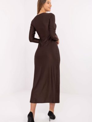 Μια κομψή φορεσιά σε γραμμή μολυβιού, που εντυπωσιάζει με τον αισθησιακό αλλά και ταυτόχρονα κομψό χαρακτήρα της. Κατασκευασμένη από βισκόζη με προσθήκη πολυεστέρα, προσαρμόζεται όμορφα στη σιλουέτα, τονίζοντας τις γυναικείες καμπύλες. Ο λείο ύφασμα προσφέρει κομψότητα, ενώ το μήκος midi καθιστά το δημιουργία εξαιρετικά στυλάτο. Το μοντέλο διακρίνεται για την βαθιά σχισμή αριστερά μέχρι το μπούστο, που προσθέτει τολμηρή έμφαση και τονίζει τα πόδια. Οι ενσωματωμένες ενισχυμένες cups διασφαλίζουν τέλεια εφαρμογή και άνεση στη χρήση. Ο ντεκολτέ σε σχήμα V διακοσμημένος με μεταλλική λεπτομέρεια και απαλό φούσκωμα εκθέτει λεπτά το στήθος και προσθέτει στην εμφάνιση κομψότητα. Το φόρεμα δεν έχει κλείσιμο, διευκολύνοντας τη φόρεση και την άνεση. Είναι η ιδανική πρόταση για επίσημες περιστάσεις και ξεχωριστές εκδηλώσεις, όποτε θέλεις να δείχνεις εντυπωσιακή και με στυλ.