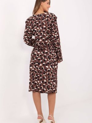 Η κομψή midi φόρεμα με απλή, κλασική γραμμή είναι η ιδανική επιλογή για πολλές περιστάσεις, όπως στη δουλειά, σε επίσημες συναντήσεις ή καθημερινές εξόδους. Είναι κατασκευασμένη από υψηλής ποιότητας μείγμα βισκόζης και πολυεστέρα, συνδυάζει την άνεση με την ανθεκτικότητα. Το γεωμετρικό σχέδιο της προσδίδει σύγχρονο χαρακτήρα, ενώ οι ραμμένες μαξιλαροθήκες στους ώμους τονίζουν διακριτικά τη σιλουέτα. Το μοντέλο με μακριά μανίκια και στρογγυλή λαιμόκοψη είναι εξαιρετικά κομψό. Η πτυχή στη δεξιά πλευρά στην περιοχή της μέσης, καθώς και οι εντυπωσιακές ραφές, διαμορφώνουν όμορφα τη σιλουέτα, προσθέτοντας ελαφρότητα και γυναικεία χάρη. Το φόρεμα δεν διαθέτει κλείσιμο, γεγονός που το καθιστά άνετο στην εφαρμογή.