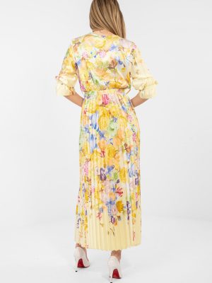 Το καλοκαιρινό φόρεμα maxi σε φαρδύ στυλ είναι συνδυασμός ελαφρότητας, κομψότητας και γυναικείας αισθητικής. Το μοντέλο εντυπωσιάζει με το λουλουδάτο σχέδιο που προσδίδει φρεσκάδα και διακριτική γοητεία, ιδανικό για το καλοκαιρινό κλίμα. Ο τυλιγμένος λαιμός αναδεικνύει όμορφα τη γραμμή του λαιμού και του ντεκολτέ, ενώ τα μανίκια 3/4 που τελειώνουν με φρου φρου προσθέτουν ρομαντικό χαρακτήρα στο σύνολο. Από τη μέση και κάτω, το φόρεμα έχει κατασκευαστεί από πλισέ ύφασμα που πέφτει εντυπωσιακά σε κίνηση και δίνει ελαφρότητα στη σιλουέτα. Στη μέση υπάρχει μια κλειστή ζώνη που επιτρέπει την έμφαση των γυναικείων μορφών και τη ρύθμιση του μοντέλου στη φιγούρα. Το φόρεμα δεν διαθέτει κλείσιμο, εξασφαλίζοντας άνεση στη φόρμα. Κατασκευασμένο από μείγμα πολυεστέρα και βισκόζης, είναι αεράτο, ελαφρύ και άνετο. Ιδανικά ταιριάζει σε καθημερινές εμφανίσεις, στη δουλειά ή κατά την διάρκεια επίσημων περιστάσεων, αρκεί να επιλέξετε τα κατάλληλα αξεσουάρ για να δημιουργήσετε μια κομψή, καλοκαιρινή εμφάνιση.