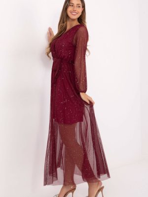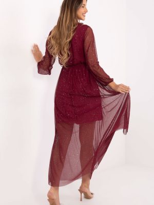Εκθαμβωτική φόρεμα σε κομψό φαρδύ σχέδιο, που είναι ιδανικό για ιδιαίτερες περιστάσεις όπως δεξιώσεις, τελετές ή βραδινές εξόδους. Κατασκευασμένο από υψηλής ποιότητας πολυεστέρα με προσθήκη ελαστάνης, αγκαλιάζει όμορφα τη σιλουέτα, προσφέροντας ταυτόχρονα άνεση και ελευθερία κινήσεων. Το ύφασμα με τις λαμπερές λεπτομέρειες αναδεικνύεται υπο subtly στο φως, δίνοντας στη δημιουργία έναν ξεχωριστό, επίσημο χαρακτήρα. Ο διαγώνιος λαιμός υπογραμμίζει σ sensuality το ντεκολτέ και τον λαιμό, ενώ η ζώνη στη μέση επισημαίνει τη μέση και προσθέτει γυναικεία χάρη. Το μακρύ μανίκι και η επένδυση εγγυώνται άνεση και κομψό φινίρισμα. Το maxi μήκος προσφέρει στυλ στο φόρεμα και το καθιστά να φαίνεται εξαιρετικά εντυπωσιακό με κάθε κίνηση. Πρόκειται για ένα μοντέλο που έχει σχεδιαστεί για γυναίκες που επιθυμούν να συνδυάσουν την κλασική κομψότητα με μια διακριτική λάμψη.