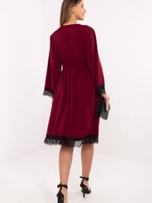 Μια κομψή φουστάνα με αέρινη γραμμή, που συνδυάζει την εκλεπτυσμένη κομψότητα με την λεπτή, γυναικεία χάρη. Φτιαγμένη από υψηλής ποιότητας μείγμα πολυεστέρα και βισκόζης, είναι ευχάριστη στην αφή, αεριζόμενη και εφαρμόζει τέλεια στο σωματότυπο. Το μοντέλο μήκους μίντι με τον θεαματικό ντεκολτέ αναδεικνύει όμορφα τη σιλουέτα, ενώ η αέρινη γραμμή προσθέτει ευκολία και ελευθερία κινήσεων. Οι μακριές μανίκες και οι δαντελωτές λεπτομέρειες στα μανίκια και στο κάτω μέρος της φούστας προσθέτουν μία αίσθηση τρυφερότητας και κομψότητας. Οι ραμμένες ελαστικές ζώνες στη μέση στο πίσω μέρος εξασφαλίζουν τέλεια εφαρμογή και άνεση κατά την φθορά, αναδεικνύοντας παράλληλα τη μέση. Η φούστα δεν διαθέτει κλείσιμο, γεγονός που την καθιστά ιδιαίτερα άνετη στην εφαρμογή. Είναι η ιδανική επιλογή για καθημερινή χρήση στην εργασία ή για πιο επίσημες περιστάσεις, όταν θέλεις να φαίνεσαι κομψή και να νιώθεις ελεύθερη.