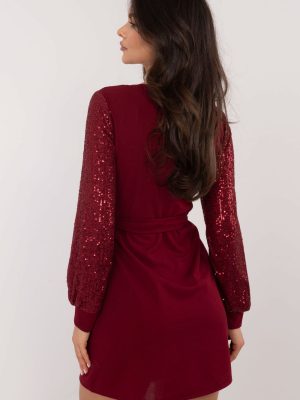 Κομψό κοκτέιλ φόρεμα με pencil κόψιμο, ιδανικό για πάρτι και επίσημες περιστάσεις, εντυπωσιάζοντας με το εκλεπτυσμένο στυλ του. Το μοντέλο με μήκος μίνι και λαιμόκοψη φάκελο τονίζει διακριτικά τη σιλουέτα, ενώ το δέσιμο στη μέση διαμορφώνει επιπλέον τη μέση, προσδίδοντας στο σύνολο του φορέματος θηλυκό χαρακτήρα. Το φόρεμα είναι κατασκευασμένο από λείο υλικό που αποτελείται από πολυεστέρα και ελαστάνη για άνετη και εφαρμοστή εφαρμογή. Την προσοχή τραβούν τα μακριά μανίκια που είναι διακοσμημένα με πούλιες, οι οποίες προσδίδουν ιδιαίτερη λάμψη και το καθιστούν ιδανική επιλογή για βραδινές εξόδους.