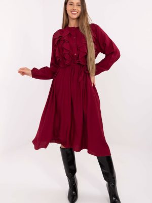 Κομψό πουκαμισό φόρεμα με φουσκωτό στυλ, ιδανικό για καθημερινή χρήση, εργασία και επίσημες περιστάσεις. Φτιαγμένο από βισκόζη, προσφέρει άνεση, ελαφρότητα και φυσική τοποθέτηση του υλικού πάνω στη σιλουέτα. Το μοντέλο σε μήκος μίντι ξεχωρίζει για το λείο σχέδιο του, το οποίο προσθέτει κομψότητα και καθολικό χαρακτήρα. Το φόρεμα διαθέτει μακρύ, φουσκωτό μανίκι, τελειωμένο με μανσέτα, προσδίδοντας του λεπτή κομψότητα. Ο επάνω μέρος έχει τελειώσει με γιακά και κλείσιμο με κουμπιά έως τη μέση, επιτρέποντας στο σχέδιο να συνδυάζει την κομψότητα της πουκαμίσας μορφής με τη θηλυκή ελαφρότητα. Και στις δύο πλευρές της λωρίδας κουμπιών υπάρχουν λεπτές ραφές που προσθέτουν μια ειδυλλιακή γοητεία στο φόρεμα. Στη μέση έχει ραμμένο λάστιχο, διασφαλίζοντας την ιδανική εφαρμογή και άνεση κατά τη διάρκεια της χρήσης, ενώ μια επιπλέον ζώνη για δέσιμο τονίζει τη μέση και επιτρέπει τη ρύθμιση του βαθμού εφαρμογής. Είναι μία στυλάτη και ταυτόχρονα πρακτική πρόταση για γυναίκες που εκτιμούν την κομψότητα και την άνεση στην καθημερινή τους εμφάνιση.
