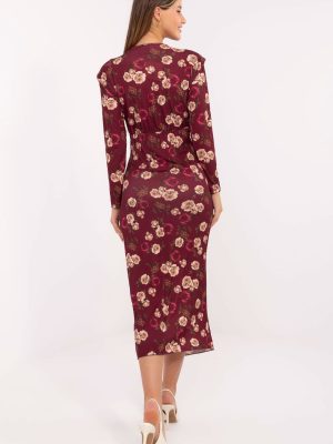 Ένα κομψό φόρεμα pencil είναι η ιδανική επιλογή για ειδικές περιστάσεις. Κατασκευασμένο από ευχάριστο στην αφή μείγμα βισκόζης και πολυεστέρα, η απαλή του γραμμή αναδεικνύει τη γυναικεία σιλουέτα, τονίζοντας τις γυναικείες καμπύλες. Το μοντέλο έχει μεσαίο μήκος και μακριά μανίκια, δίνοντάς του κλάση και κομψότητα. Στο μπροστινό μέρος υπάρχει μια εντυπωσιακή σχισμή που φτάνει μέχρι το μηρό, η οποία διακριτικά εκθέτει το πόδι, προσθέτοντας μια αισθησιακή διάθεση στη συνολική εμφάνιση. Ο παλτό λαιμός οπτικά μακραίνει τον λαιμό και αναδεικνύει το ντεκολτέ, ενώ οι διακοσμητικές πτυχώσεις με μεταλλική λεπτομέρεια αποτελούν μια κομψή πινελιά που τραβά την προσοχή. Το φόρεμα με λουλουδένιο σχέδιο μπορεί να φορεθεί τέλεια σε πάρτι, δεξιώσεις και επίσημες περιστάσεις, συνδυάζοντας τη θηλυκότητα, την κομψότητα και την άνεση σε ένα.