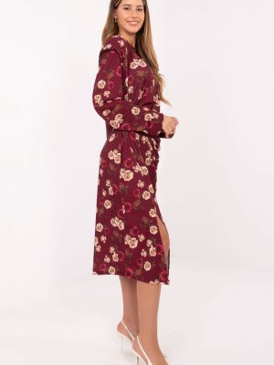 Ένα κομψό midi φόρεμα με απλή, κλασική γραμμή είναι η ιδανική επιλογή για πολλές επαγγελματικές περιστάσεις, επισκέψεις ή καθημερινές εξόδους. Ραμμένο από υψηλής ποιότητας μείγμα βισκόζης και πολυεστέρα, συνδυάζει την άνεση με την ανθεκτικότητα. Το λουλουδάτο μοτίβο του προσδίδει ρομαντικό χαρακτήρα, ενώ οι ενσωματωμένες θήκες στους ώμους τονίζουν διακριτικά τη γραμμή της σιλουέτας. Το μοντέλο με μακριά μανίκια και στρογγυλή λαιμόκοψη παρουσιάζεται εξαιρετικά κομψό. Η τρισδιάστατη ύφανση στη δεξιά πλευρά γύρω από τη μέση, καθώς και οι εντυπωσιακές ραφές, μορφοποιούν όμορφα τη σιλουέτα, προσθέτοντας της ελαφρότητα και θηλυκή χάρη. Το φόρεμα δεν διαθέτει κούμπωμα, γεγονός που το καθιστά άνετο στην τοποθέτηση.