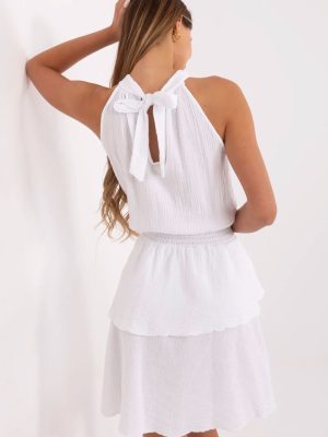 Ελαφρύ και αέρινο φόρεμα ιδανικό για καλοκαιρινές μέρες. Φτιαγμένο από αναπνεύσιμο, ευχάριστο στην αφή βαμβακερό μουσκίν ύφασμα, που παρέχει άνεση ακόμα και στις μεγαλύτερες ζέστες. Μοντέλο σε φαρδύ σχήμα, με μήκος πάνω από το γόνατο, τονίζει όμορφα τη γυναικεία σιλουέτα. Οι πτυχές στη μέση με ραμμένο λάστιχο διαμορφώνουν απαλά τη μέση, ενώ το κάτω μέρος με φούστες προσθέτει ελαφρότητα και διακριτική γοητεία. Το φόρεμα διαθέτει στρογγυλή λαιμόκοψη και είναι χωρίς μανίκια, καθιστώντας το ιδανικό για καθημερινές καλοκαιρινές δραστηριότητες. Στο πίσω μέρος, η κομψή δέσμευση στο ύψος του λαιμού τονίζει την απαλότητα της πλάτης και προσθέτει ένα ρομαντικό χαρακτήρα στο σύνολο. Η универсальная, λεία σχέδιο το καθιστά εξαιρετική βάση για καθημερινές στυλιστικές προτάσεις, απλώς προσθέστε παντόφλες, ένα ψάθινο καπέλο και είστε έτοιμη για μια βόλτα στην παραλία ή για μεσημεριανό γεύμα με μια φίλη.