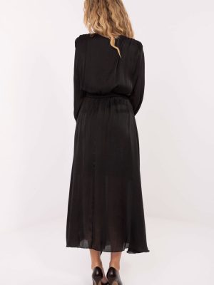Η κομψή φόρεμα με άνοιγμα είναι μια στυλάτη πρόταση κατάλληλη για καθημερινή χρήση, για τη δουλειά και για επίσημες περιστάσεις. Κατασκευασμένο από συνδυασμό λυοσελ και πολυεστέρα, αγκαλιάζει όμορφα τη σιλουέτα, προσφέροντας άνεση και μια διακριτική ρέουσα αίσθηση. Το μοντέλο διαθέτει φόδρα, η οποία αυξάνει την άνεση κατά τη διάρκεια της χρήσης και αναδεικνύει την ποιότητα κατασκευής. Η φόρεμα εντυπωσιάζει με την απαλή φινίρισή της και τις προσεγμένες λεπτομέρειες. Στη μέση υπάρχει μια φαρδιά ζώνη για δέσιμο, η οποία σχηματίζει εντυπωσιακά τη μέση και προσθέτει στην συνολική κομψότητα. Οι ραμμένες μαξιλάριες στους ώμους δίνουν στη σιλουέτα μια έντονη γραμμή και μοντέρνες αναλογίες. Το μακρύ μανίκι και ο λαιμός με δέσιμο προσθέτουν στη φόρεμα έναν γυναικείο, στυλάτο εμφάνιση, ενώ το μήκος maxi αναδεικνύει την κομψότητα και τη διαχρονική της ομορφιά. Η απουσία κλεισίματος καθιστά το μοντέλο άνετο και εύκολο στην τοποθέτηση. Είναι η ιδανική φόρεμα για γυναίκες που εκτιμούν την τάξη, την άνεση και τις εκλεπτυσμένες λεπτομέρειες.