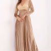 Μοναδικό και κομψό maxi φόρεμα, που συνδυάζει τη γυναικεία γραμμή με εντυπωσιακές λεπτομέρειες, ιδανικό για επαγγελματικές περιστάσεις και εκδηλώσεις. Κατασκευασμένο από ελαφρύ μείγμα βισκόζης και πολυεστέρα, αγκαλιάζει όμορφα τη σιλουέτα, εξασφαλίζοντας άνεση και ελαφριά αίσθηση. Το μοντέλο διαθέτει περιποιημένο ντεκολτέ, μακριά μανίκια και αποκοπή κάτω από το στήθος, που υπογραμμίζει διακριτικά τη μέση. Ενσωματωμένα ενίσχυση cups προσθέτουν στήριξη και διαμορφώνουν όμορφα το άνω τμήμα της σιλουέτας. Ο φαρδύς, πλισέ κρόκος προσδίδει στο φόρεμα ελαφριά αίσθηση και εντυπωσιακή κίνηση σε κάθε βήμα. Το άνω μέρος του φορέματος έχει διακοσμηθεί με παγιέτες μπροστά, που προσφέρουν λάμψη και κομψότητα, ενώ η δέσιμο πίσω σε μορφή κορδέλας επιτρέπει την προσαρμογή του φορέματος στη σιλουέτα, τονίζοντας τη μέση. Το φόρεμα δεν διαθέτει κλασικό κλείσιμο, φοριέται από το κεφάλι, τονίζοντας τον ελεύθερο, ελαφρύ χαρακτήρα του. Είναι πρόταση για γυναίκες που εκτιμούν την κομψότητα, τις εντυπωσιακές λεπτομέρειες και την άνεση φορώντας, ιδανικό για βραδινές εξόδους, εκδηλώσεις και ιδιαίτερες περιστάσεις.