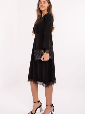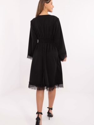 Μια στυλάτη φούστα που συνδυάζει την κομψότητα με την υποτονική γυναικεία χάρη. Κατασκευασμένη από υψηλής ποιότητας μείγμα πολυεστέρα και βισκόζης, είναι ευχάριστη στην αφή, αεράτη και προσφέρει εξαιρετική εφαρμογή στο σιλουέτα. Το μοντέλο μήκους midi με φάκελο ντεκολτέ τονίζει όμορφα τη σιλουέτα, ενώ η φαρδιά γραμμή προσδίδει ελαφρότητα και ελευθερία. Τα μακριά μανίκια και οι δαντελένιες λεπτομέρειες στους καρπούς και στο κάτω μέρος της φούστας προσθέτουν στο σύνολο λεπτότητα και κομψότητα. Οι ραμμένες ελαστικές ταινίες στη μέση στο πίσω μέρος εξασφαλίζουν τέλεια εφαρμογή και άνεση, τονίζοντας ταυτόχρονα τη μέση. Η φούστα δεν διαθέτει κλείσιμο, καθιστώντας την εξαιρετικά άνετη στην τοποθέτηση. Είναι η ιδανική επιλογή για καθημερινή χρήση στη δουλειά, καθώς και για πιο επίσημες περιστάσεις όταν θέλεις να φαίνεσαι κομψή και να νιώθεις άνετα.