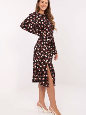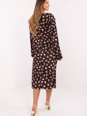 Η κομψή midi φορεσιά με απλό, κλασικό σχέδιο είναι η ιδανική επιλογή για πολλές ευκαιρίες, είτε για δουλειά, είτε για επίσημες συναντήσεις ή καθημερινές εξόδους. Ραμμένη από υψηλής ποιότητας μείγμα βισκόζης και πολυεστέρα, συνδυάζει άνεση και αντοχή. Το γεωμετρικό σχέδιο της δίνει μια μοντέρνα αίσθηση, ενώ οι ραμμένες θήκες στους ώμους τονίζουν διακριτικά τη γραμμή της σιλουέτας. Το μοντέλο με μακριά μανίκια και στρογγυλή λαιμόκοψη παρουσιάζεται εξαιρετικά κομψό. Οι συγκεντρώσεις στη δεξιά πλευρά στην περιοχή της μέσης, καθώς και οι εντυπωσιακές πτυχώσεις διαμορφώνουν όμορφα τη σιλουέτα, προσθέτοντας ελαφρότητα και γυναικεία χάρη. Η φορεσιά δεν διαθέτει κούμπωμα, γεγονός που την καθιστά άνετη στη φόρεση.
