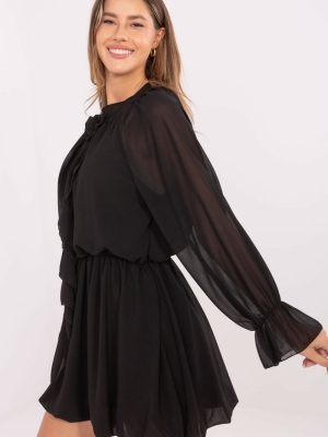 Αυτή η φουσκωτή φόρεμα cocktail είναι μια πρόταση για γυναίκες που αγαπούν να φαίνονται κομψές και με στυλ. Κατασκευασμένη από υψηλής ποιότητας μείγμα πολυεστέρα, βισκόζης και ελαστάνης, αγκαλιάζει όμορφα τη σιλουέτα, προσφέροντας ταυτόχρονα άνεση κατά τη διάρκεια της χρήσης. Η ελαστική μέση αναδεικνύει τη μέση και εξασφαλίζει τέλεια εφαρμογή. Το μοντέλο με μήκος μίνι και μακριά μανίκια μαγεύει με τις διακριτικές λεπτομέρειες, οι μύτες στα μανίκια προσθέτουν ελαφρότητα, ενώ ο ζαμπόν με την όμορφη ροζ λεπτομέρεια στο μπροστινό μέρος προσελκύει το βλέμμα και αναδεικνύει τον ιδιαίτερο χαρακτήρα της φόρεμα. Ο στρογγυλός λαιμός προσδίδει κλάση, ενώ το ομαλό σχέδιο κάνει το σύνολο να φαίνεται κομψό και διαχρονικό. Το φόρεμα δεν έχει κλείσιμο, πράγμα που το καθιστά εξαιρετικά άνετο στην εφαρμογή. Η επένδυση εξασφαλίζει άνεση και τέλεια τοποθέτηση του υλικού. Είναι η ιδανική επιλογή για πάρτι, δεξιώσεις ή πρωτοχρονιά και θα σας προσφέρει χάρη και σιγουριά σε κάθε κατάσταση.