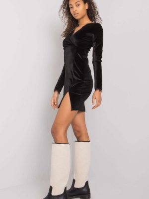 Μαύρο βελούδινο μίνι φόρεμα με μακριά μανίκια. Σέξι σχισμή στο κάτω μέρος. Ιδανικό για πολλές περιστάσεις.