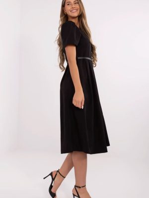 Η κλασική και γυναικεία φόρεμα με φαρδιά σιλουέτα είναι μια εξαιρετική επιλογή για γυναίκες που εκτιμούν την κομψότητα και την άνεση. Κατασκευασμένο από μαλακό, ελαστικό υλικό (πολυεστέρας με προσθήκη ελαστάνης), απλώνει όμορφα στο σώμα και εξασφαλίζει ελευθερία κινήσεων. Το μοντέλο midi μήκους με κοντό μανίκι και στρογγυλή λαιμόκοψη είναι κατάλληλο τόσο για τη δουλειά όσο και για επίσημες εξόδους. Οι διακριτικές ραφές στους ώμους και στη μέση προσδίδουν στην συνολική εμφάνιση λεπτή όγκο και τονίζουν τη μέση, ενώ η ζώνη με κούμπωμα τονίζει ακόμη περισσότερο τη γυναικεία σιλουέτα. Το λείο υλικό σε συνδυασμό με την απλή γραμμή και το κλείσιμο με φερμουάρ στο πίσω μέρος δημιουργούν μια διαχρονική εμφάνιση που ταιριάζει τέλεια με κομψά αξεσουάρ.