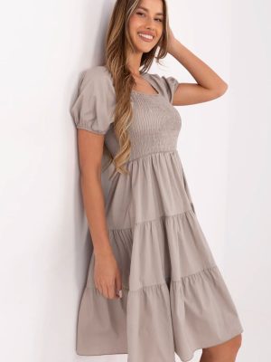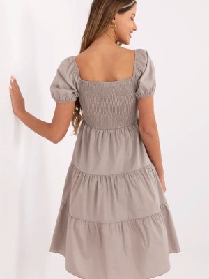 Το καλοκαιρινό φόρεμα σε γραμμή Α είναι η ιδανική πρόταση για καθημερινές εμφανίσεις τις ζεστές ημέρες. Κατασκευασμένο από μαλακό, αέρινο ύφασμα από βαμβάκι με μικρή προσθήκη ελαστάνης, προσφέρει άνεση και ελευθερία κινήσεων όλη την ημέρα. Το μοντέλο φτάνει μέχρι το γόνατο, με χαρακτηριστικά στοιχεία όπως ο τετράγωνος λαιμός και το φουσκωτό κοντό μανίκι, που προσθέτει μια ρομαντική γοητεία στο σύνολο. Το πάνω μέρος του φορέματος διακοσμείται με πτυχές που αναδεικνύουν το στήθος και προσδίδουν ελαφρότητα στην εμφάνιση. Ένα επιπλέον διακοσμητικό στοιχείο είναι η volanette στο κάτω μέρος του φορέματος, που κυματίζει όμορφα στην κίνηση. Η απουσία κλεισίματος καθιστά το μοντέλο εύκολο να φορεθεί και εξαιρετικά άνετο για καθημερινή χρήση. Το λείο υλικό και η γυναικεία γραμμή κάνουν το φόρεμα ιδανικό είτε για βόλτες, είτε για ψώνια, είτε για συναντήσεις με φίλους.