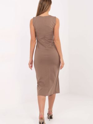 Ένα κομψό καθημερινό φόρεμα σε γραμμή μολυβιού είναι μία καθολική πρόταση τόσο για την καθημερινότητα όσο και για τη δουλειά. Κατασκευασμένο από συνδυασμό βισκόζης, νάιλον και ελαστάνης, εξασφαλίζει άνεση κατά τη χρήση, ελαστικότητα και κομψή εφαρμογή στη σιλουέτα. Το μοντέλο με μήκος μίντι, χωρίς μανίκια, με στρογγυλή λαιμόκοψη και κρυφό φερμουάρ στο πίσω μέρος, εγγυάται άνεση και καθαρή εμφάνιση. Το φόρεμα διαθέτει ραμμένες τσέπες με καπάκια, που προσθέτουν πρακτικότητα, ενώ τα διακοσμητικά κουμπιά στο μπροστινό μέρος προσφέρουν μία διακριτική διακοσμητική νότα. Η λεπτή σχισμή στο μπροστινό μέρος στο κάτω μέρος προσθέτει ελαφρότητα στο σύνολο και διευκολύνει την ελευθερία κινήσεων, τονίζοντας τη γυναικεία σιλουέτα με κομψό τρόπο.
