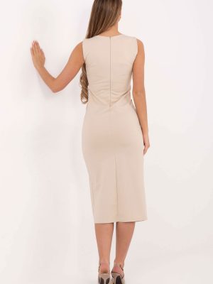 Ένα κομψό καθημερινό φόρεμα σε pencil στυλ είναι μία καθολική πρόταση για καθημερινή χρήση και για το γραφείο. Κατασκευασμένο από μείγμα βισκόζης, νάιλον και ελαστάνης, προσφέρει άνεση στη φόρεμα, ελαστικότητα και κομψή εφαρμογή στο σώμα. Το μοντέλο έχει μήκος midi, χωρίς μανίκια, με στρογγυλή λαιμόκοψη και κρυφό φερμουάρ στο πίσω μέρος, διασφαλίζοντας άνεση και καλή ολοκλήρωση. Το φόρεμα διαθέτει ραμμένες τσέπες με καπάκια, που προσθέτουν πρακτικότητα, ενώ τα διακοσμητικά κουμπιά στο μπροστινό μέρος εισάγουν μία διακριτική διακοσμητική πινελιά. Το λεπτό σκίσιμο στο μπροστινό μέρος στο κάτω μέρος προσδίδει ελαφρότητα και διευκολύνει την ελευθερία κίνησης, τονίζοντας τη γυναικεία σιλουέτα με κομψό τρόπο.
