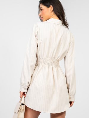 Ένα κομψό φόρεμα που κλείνει με κουμπιά είναι μια στυλάτη πρόταση για γυναίκες που εκτιμούν την κλασική αισθητική με μοντέρνα εκδοχή. Το μοντέλο μήκους mini και φαρδιάς γραμμής τονίζει όμορφα τη μέση και προσφέρει ελαφρότητα και αναλογίες στην εμφάνιση. Το φόρεμα έχει κατασκευαστεί από μείγμα υψηλής ποιότητας πολυεστέρα, βισκόζης και ελαστάνης, καθιστώντας το άνετο στην εφαρμογή, ελαφρώς ελαστικό και κατάλληλο για την σιλουέτα. Το ριγωτό σχέδιο προσθέτει διαχρονικό χαρακτήρα και υπονοούμενη κομψότητα. Το μοντέλο διαθέτει κλασικό γιακά και μακρύ μανίκι, κάτι που ενισχύει το στυλ του πουκαμίσου και το καθιστά ιδανικό τόσο για επαγγελματικές εμφανίσεις όσο και για πιο επίσημες περιστάσεις. Στο μπροστινό μέρος υπάρχουν διακοσμητικές ραφές που σχηματίζουν τη σιλουέτα, ενώ οι πτυχώσεις στο πίσω μέρος στο ύψος της μέσης ενισχύουν επιπλέον τη μέση και εξασφαλίζουν καλύτερη εφαρμογή. Πρόκειται για ένα πολυδιάστατο μοντέλο που συνδυάζει την κομψότητα με την άνεση, ιδανικό τόσο για το γραφείο όσο και για ιδιαίτερες εξόδους.
