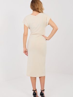 Στυλάτο φόρεμα μολυβιού, ιδανικό για πάρτι ή επίσημες περιστάσεις. Κατασκευασμένο από άνετο μείγμα πολυεστέρα και βισκόζης, που απλώνεται όμορφα στο σώμα, προσφέροντας ελαφρότητα και κομψότητα. Το φόρεμα διαθέτει ομαλό σχέδιο, στρογγυλή λαιμόκοψη και κοντό μανίκι, ενώ η διακοσμητική πτύχωση στο μπροστινό μέρος σ subtly μοντελοποιεί τη σιλουέτα, προσθέτοντας χαρακτήρα. Το σκίσιμο στο κάτω μέρος που φτάνει μέχρι τον μηρό προσθέτει μια ήπια, αισθησιακή αίσθηση, ενώ το μήκος midi τονίζει την κομψότητα της στυλιστικής επιλογής. Η απουσία κλεισίματος καθιστά το φόρεμα άνετο στη φόρμα, και η κλασική γραμμή μολυβιού προβάλλει τέλεια τη γυναικεία σιλουέτα. Αυτή είναι μια πρόταση για γυναίκες που εκτιμούν το στυλ, την άνεση και την ήπια αισθησιασμό σε ένα.