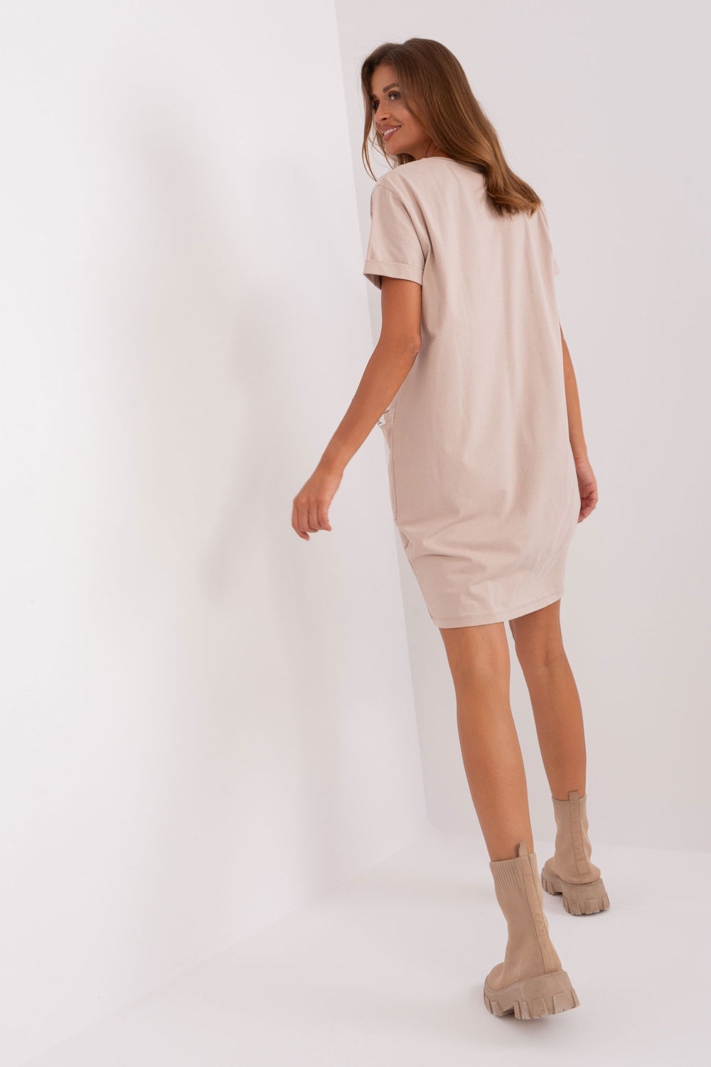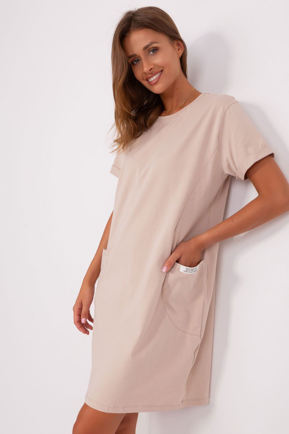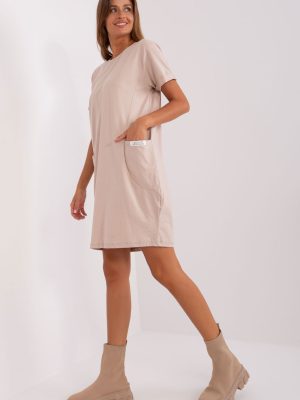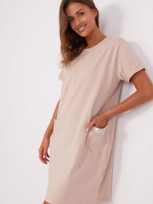 Άνετο φόρεμα φούτερ με απλό σχέδιο, σχεδιασμένο για καθημερινή χρήση τις ζεστές, καλοκαιρινές ημέρες. Ο μινιμαλιστικός, λείας σχεδίαση του το καθιστά ευέλικτο και εύκολο στη στυλιστική του χρήση, καθώς είναι ιδανικό τόσο για βόλτες, ψώνια όσο και για συναντήσεις με φίλους. Το μοντέλο μήκους μέχρι το γόνατο προσφέρει ελευθερία κινήσεων και άνεση κατά την κατανάλωση, ενώ τα κοντά μανίκια και η κλασική, στρογγυλή λαιμόκοψη τονίζουν τον casual χαρακτήρα του φορέματος. Η απουσία κλεισίματος προσθέτει επιπλέον άνεση, απλώς το φοράς και είσαι έτοιμος. Το φόρεμα είναι κατασκευασμένο από μαλακή και αναπνεύσιμη μείξη βαμβακιού με προσθήκη ελαστάνης, διασφαλίζοντας τέλεια προσαρμογή στο σώμα, ενώ παρέχει ελαστικότητα και άνεση καθ’ όλη τη διάρκεια της ημέρας. Ένα πρακτικό στοιχείο είναι οι εισχωρητές τσέπες, που προσθέτουν λειτουργικότητα και τονίζουν τον αθλητικό στυλ. Είναι ιδανική πρόταση για γυναίκες που εκτιμούν την άνεση, την απλότητα και την διαχρονική εμφάνιση.