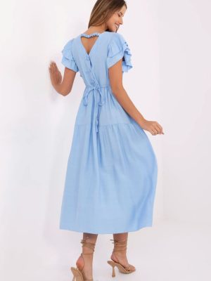 Ένα κομψό και γυναικείο καλοκαιρινό φόρεμα με φαρδιά γραμμή είναι μια εξαιρετική πρόταση για καθημερινή χρήση καθώς και για τη δουλειά. Κατασκευασμένο από ελαφρύ και αεριζόμενο μείγμα βισκόζης και νάιλον, εξασφαλίζει άνεση κατά τη διάρκεια ακόμα και των πιο ζεστών ημερών. Το μοντέλο με μήκος μίντι κάθεται όμορφα πάνω στη σιλουέτα, ενώ η ζώνη στη μέση επιτρέπει μια διακριτική ανάδειξη της μέσης. Το λείο ύφασμα δίνει στο φόρεμα έναν καθολικό, κομψό χαρακτήρα, κάνοντάς το εύκολο να το συνδυάσετε με διάφορες στυλιστικές επιλογές. Το κοντό μανίκι σε σχήμα φαλνέτας προσθέτει ελαφρότητα και ρομαντική γοητεία, ενώ η σχήματος V λαιμόκοψη οπτικά επιμηκύνει το λαιμό και προσθέτει θηλυκότητα. Το φόρεμα κλείνει με κουμπιά στο πίσω μέρος, που αποτελεί στυλιστική λεπτομέρεια και διευκολύνει την τοποθέτηση. Είναι μια ιδανική πρόταση για γυναίκες που εκτιμούν την άνεση, την κομψότητα και τη λειτουργικότητα, τόσο σε καθημερινές υποχρεώσεις όσο και κατά τις ήσυχες καλοκαιρινές μέρες.