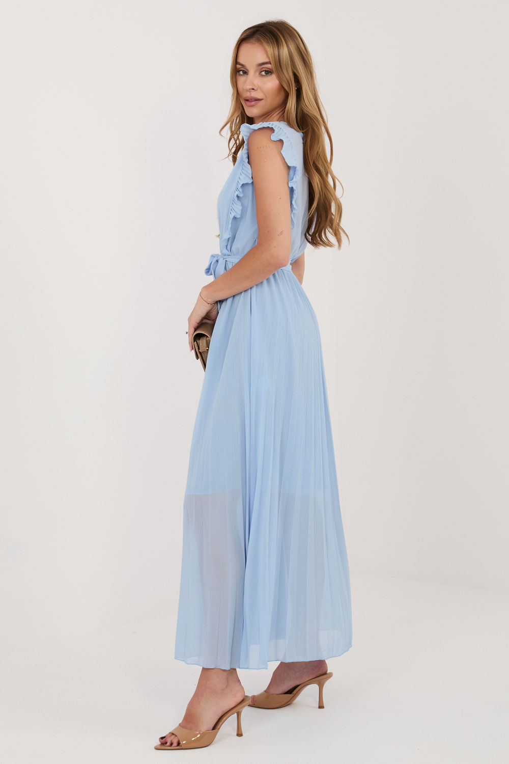 Η φλοράλ μίντι φόρεμα είναι η ιδανική πρόταση για καλοκαιρινές μέρες, συνδυάζοντας ελαφρότητα, άνεση και γυναικείο στυλ. Είναι ιδανικό για καθημερινές εμφανίσεις, προσφέροντας ελευθερία κινήσεων και κομψή εμφάνιση. Το μοντέλο είναι κατασκευασμένο από υψηλής ποιότητας μείγμα πολυεστέρα, βισκόζης και ελαστάνης, είναι ελαφρύ, ευχάριστο στην αφή και εφαρμόζει όμορφα στη σιλουέτα. Το λείο μοτίβο τονίζει τον πολυλειτουργικό χαρακτήρα του φορέματος, καθιστώντας το εύκολο να το συνδυάσετε με διάφορα αξεσουάρ. Το φόρεμα διαθέτει κλειστό ντεκολτέ, το οποίο υπογραμμίζει διακριτικά τον λαιμό και προσθέτει στην συνολική γυναικεία γοητεία. Η απουσία μανικιών το καθιστά ιδανικό για ζεστές μέρες. Στη μέση υπάρχει μια ζώνη σε μορφή κορδέλας, που επιτρέπει την τέλεια εφαρμογή και υπογραμμίζει τη σιλουέτα. Ιδιαίτερη χαρακτήρα προσθέτουν οι διακοσμητικές ρίγες στα πλάγια στην επάνω πλευρά του φορέματος, που του δίνουν ελαφρότητα και ρομαντικό στυλ. Το κάτω μέρος από την μέση είναι πλισέ, κάτι που δημιουργεί όμορφες κινήσεις και υπογραμμίζει τη φλοράλ γραμμή. Ένα επιπλέον πλεονέκτημα είναι η υποθετική φόδρα μέχρι το γόνατο, η οποία αυξάνει την άνεση της φ woreματος και εξασφαλίζει καλύτερη εφαρμογή του υλικού. Είναι μια εξαιρετική επιλογή για γυναίκες που εκτιμούν το στυλ, την άνεση και τις διακριτικές, γυναικείες λεπτομέρειες στις καλοκαιρινές εμφανίσεις.