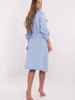 Στιλάτη καλοκαιρινή φόρεμα σε στυλ πουκάμισου, κατασκευασμένη από αεριζόμενη, φυσική βαμβακερή ύλη. Η λειά υφή και το κλασικό μήκος midi καθιστούν το μοντέλο ιδανικό για καθημερινές εμφανίσεις. Διαθέτει μακρύ μανίκι με δυνατότητα παρακολούθησης, πρακτικό γιακά και πλήρες κουμπί επί της διάρκειας. Η ζώνη στη μέση τονίζει διακριτικά τη μέση, ενώ οι τσέπες με πατιλέτες στο ύψος του στήθους προσθέτουν λειτουργικότητα και χαρακτήρα. Ιδανικό για βόλτες, δουλειά ή συναντήσεις με φίλους, καθολικό και πάντα στιλάτο.