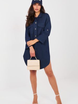 Αναπαυτικό φόρεμα πουκάμισου με φαρδιά γραμμή, ιδανικό για καθημερινές στυλιστικές επιλογές. Το μοντέλο κλείνει με κουμπιά, διαθέτει κλασικό γιακά που προσδίδει στην όλη εμφάνιση διαχρονικό χαρακτήρα. Η λεία υφή καθιστά το φόρεμα εξαιρετικά ευέλικτο και εύκολο στην στυλιζάρισμα. Κατασκευασμένο από ευχάριστο βαμβάκι με πρόσθετο ελαστάν, προσφέρει άνεση κατά την φθορά και ελευθερία κινήσεων. Το μακρύ μανίκι με δυνατότητα αναδίπλωσης επιτρέπει την προσαρμογή του φορέματος ανάλογα με την εποχή και τις προσωπικές προτιμήσεις. Το μήκος πάνω από το γόνατο και το τελείωμα σε ημικύκλιο τονίζουν ελαφρώς τη σιλουέτα και προσθέτουν μια αίσθηση ελαφρότητας. Στο μπροστινό μέρος υπάρχουν πρακτικές τσέπες με καπλέτες, οι οποίες τονίζουν το casual στυλ του φορέματος. Ιδανική πρόταση για καθημερινή χρήση στη δουλειά, σε βόλτες ή σε συναντήσεις σε χαλαρή ατμόσφαιρα.