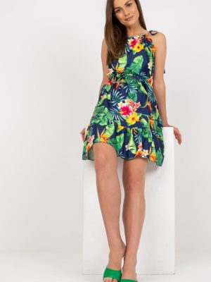Καλοκαιρινό φόρεμα με δεμένες τιράντες. Δέσιμο στη μέση, βολάν στο κάτω μέρος.