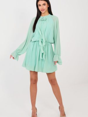 Αυτή η φλοράλ φόρεμα κοκτέιλ είναι μια πρόταση για γυναίκες που αγαπούν να φαίνονται κομψές και με κλάση. Κατασκευασμένη από υψηλής ποιότητας μείγμα πολυεστέρα, βισκόζης και ελαστάνης, κάθεται όμορφα στη σιλουέτα, προσφέροντας ταυτόχρονα άνεση κατά την χρήση. Η ελαστική ζώνη στη μέση τονίζει τη μέση και εξασφαλίζει ιδανική εφαρμογή. Το μοντέλο με μήκος μίνι και μακριά μανίκια εντυπωσιάζει με τις λεπτομέρειές του, οι φρου φράνες στα μανίκια προσθέτουν ελαφρότητα, ενώ η ράμφος με το διακοσμητικό τριαντάφυλλο στο μπροστινό μέρος προσελκύει την προσοχή και τονίζει τον μοναδικό χαρακτήρα της φόρεμας. Ο στρογγυλός λαιμός προσδίδει κλάση σε ολόκληρη τη φόρεμα, ενώ το λείο σχέδιο κάνει το κομμάτι να φαίνεται κομψό και διαχρονικό. Η φόρεμα δεν έχει κλείσιμο, πράγμα που την καθιστά εξαιρετικά άνετη στην τοποθέτηση. Η επένδυση εξασφαλίζει άνεση και τέλεια τοποθέτηση του υφάσματος. Είναι η ιδανική επιλογή για πάρτι, δεξιώσεις ή Πρωτοχρονιά, προσθέτοντας σας χάρη και αυτοπεποίθηση σε κάθε κατάσταση.
