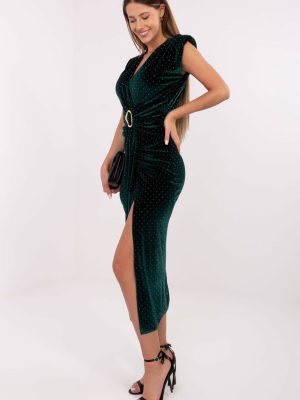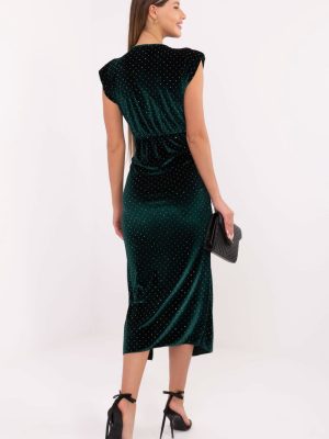 Μια στυλάτη, γυναικεία φόρμα μίντι σε στυλ μολυβιού, σχεδιασμένη για εκλεκτές περιστάσεις. Κατασκευασμένη από υψηλής ποιότητας μείγμα πολυεστέρα και ελαστάνης, προσφέρει άψογη εφαρμογή και άνεση κατά την τακτική. Το μοντέλο ξεχωρίζει με τις ενσωματωμένες μαξιλαροθήκες στους ώμους, που δίνουν στην σιλουέτα μία κομψή και έντονη μορφή. Ο στρογγυλός λαιμός αναδεικνύει όμορφα τη γραμμή του στήθους, ενώ η σχισμή μπροστά εκθέτει διακριτικά το πόδι, προσθέτοντας μία λυγερή αίσθηση στο σύνολο. Στο μπροστινό μέρος υπάρχουν ρυτιδώσεις με μεταλλική λεπτομέρεια, που οπτικά συσφίγγουν τη μέση και αποτελούν ένα εντυπωσιακό στοιχείο. Η φόρμα είναι χωρίς μανίκια, χωρίς κούμπωμα, με λεπτομέρειες, διαχρονική και ιδανική για επίσημες εξόδους, πάρτι και κομψές δεξιώσεις.
