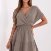 Κομψό φόρεμα-φάκελος με κοντά μανίκια. Το φόρεμα είναι κουμπωμένο, με ζώνη που δένει στη μέση. Ιδανικό για πολλές περιστάσεις.
