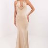 Μια κομψή maxi φόρεμα με αισθησιακή γραμμή γοργόνας, ιδανικό για επισκέψεις και εκδηλώσεις όπου η κομψότητα και η εντυπωσιακή εμφάνιση είναι απαραίτητες. Κατασκευασμένο από κυρίως μείγμα πολυεστέρα και βισκόζης, αγκαλιάζει υπο subtly τη σιλουέτα, τονίζοντας τις καμπύλες της και εξασφαλίζοντας ταυτόχρονα άνεση κατά τη διάρκεια της χρήσης. Το μοντέλο εντυπωσιάζει με τη λεία, μινιμαλιστική σχεδίαση, που προσδίδει στο δημιουργικό στυλ κομψότητα και διαχρονικό χαρακτήρα. Το φόρεμα είναι χωρίς μανίκια, με έντονο, ρέον ντεκολτέ που δημιουργεί μια κομψή γραμμή και εκθέτει απαλά τους ώμους. Ένα ιδιαίτερο στοιχείο είναι η πρόσδεση του φορέματος στο λαιμό με μια μεταλλική θηλή, που έχει τόσο διακοσμητική όσο και πρακτική λειτουργία. Η έλλειψη παραδοσιακού κλεισίματος καθιστά το φόρεμα να φαίνεται εξαιρετικά ρέον και σύγχρονο, καθώς η φόρμα του παραμένει αδιατάρακτη από πρόσθετα στοιχεία. Είναι η ιδανική επιλογή για γυναίκες που επιθυμούν να ξεχωρίσουν με κομψότητα συνδυασμένη με σύγχρονη, τολμηρή γραμμή.