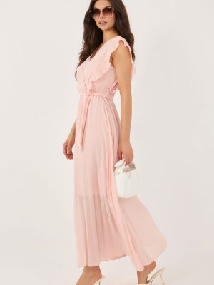 Η φούστα midi φούστας είναι η ιδανική πρόταση για τις καλοκαιρινές μέρες, συνδυάζοντας ελαφρότητα, άνεση και γυναικεία στυλ. Θα αποδειχθεί εξαιρετική σε καθημερινές στυλιστικές επιλογές, εξασφαλίζοντας ελευθερία κινήσεων και κομψή εμφάνιση. Το μοντέλο κατασκευασμένο από μίγμα υψηλής ποιότητας πολυεστέρα, βισκόζης και ελαστάνης είναι ελαφρύ, ευχάριστο στην αφή και κάθεται καλά στη σιλουέτα. Το λείο σχέδιο αναδεικνύει τον καθολικό χαρακτήρα της φόρεμας, επιτρέποντας την εύκολη προσαρμογή της σε διάφορα αξεσουάρ. Η φούστα διαθέτει περιτύλιγμα που αναδεικνύει διακριτικά το λαιμό και προσθέτει μια νότα γυναικείας χάρης. Η απουσία μανικιών καθιστά το μοντέλο ιδανικό για ζεστές μέρες. Στη μέση υπάρχει μία ζώνη τύπου σαφράν, που επιτρέπει την ιδανική προσαρμογή και τονίζει τη σιλουέτα. Οι διακοσμητικές φρουτοσαλάτες στο πλάι της ανώτερης μορφής της φούστας προσθέτουν ελαφρότητα και ρομαντικό στυλ. Το κάτω μέρος από τη μέση είναι πλισέ, γεγονός που δημιουργεί όμορφες κινήσεις και τονίζει τη φουντωτή γραμμή. Ένα πρόσθετο πλεονέκτημα είναι η φόδρα που φτάνει μέχρι το γόνατο, η οποία αυξάνει την άνεση στον τομέα και προσφέρει καλύτερη προσαρμογή του υλικού. Είναι μια εξαιρετική επιλογή για γυναίκες που εκτιμούν το στυλ, την άνεση και τις διακριτικές, γυναικείες λεπτομέρειες σε καλοκαιρινές στυλιστικές προτάσεις.